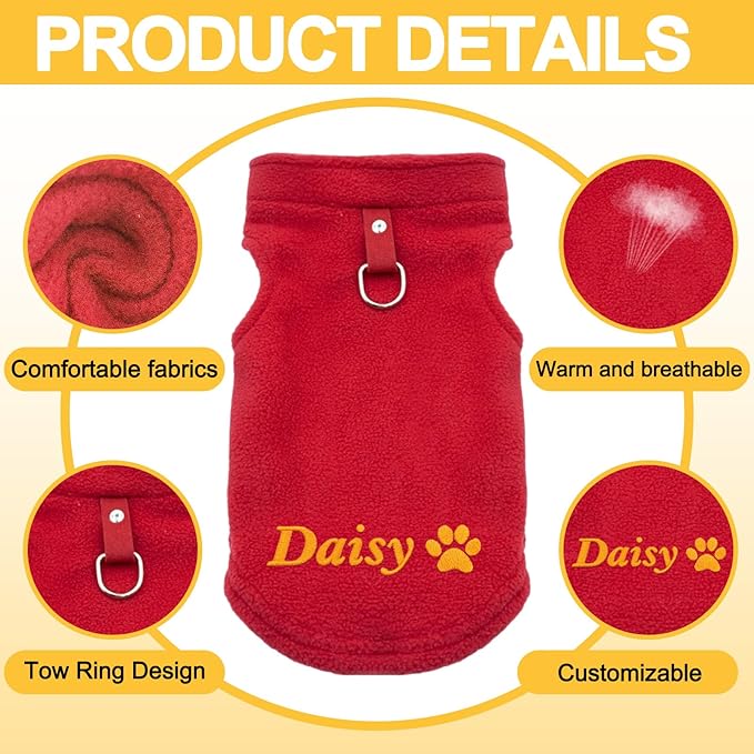 - 🐾 Personalized Just for Your Pup: Make your dog stand out with a custom embroidered name! Each fleece vest is personalized with your pet's name, adding a thoughtful and stylish touch that dog parents will love—perfect for daily walks, photos, or holiday gifts.