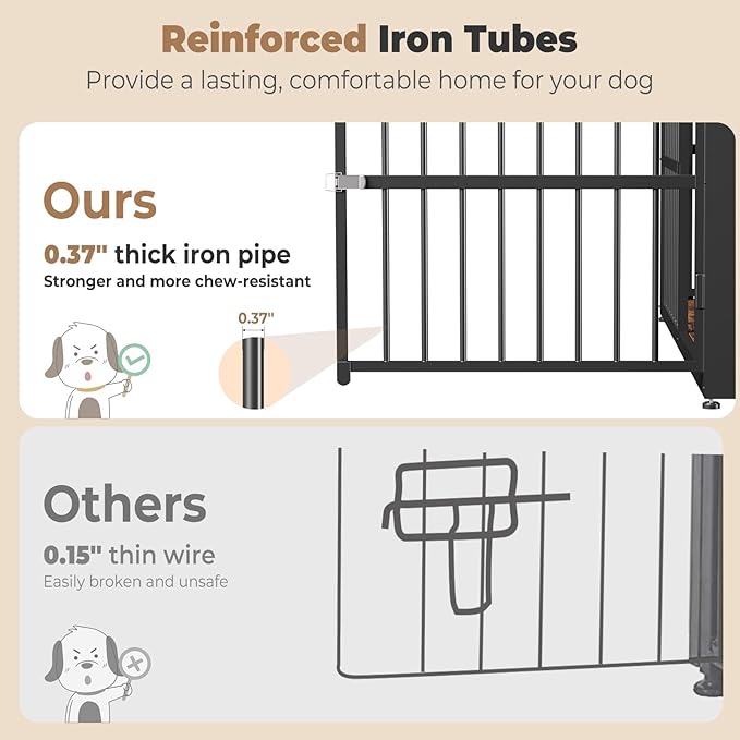 - 【Sturdy and Chew-Resistant】This dog crate furniture is made of premium particle board and iron pipe, which is stronger and more chewy; It will accompany your dog throughout the growing stages; It's an ideal gift for your dog