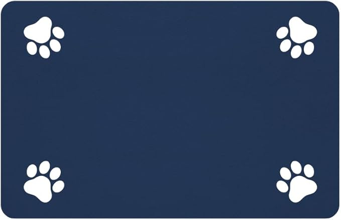 Pet Feeding Mat-Absorbent Pet Placemat for Food and Water Bowl, with Waterproof Rubber Backing, Quick Dry Water Dispenser Mat for Dog and Cat (24"x16", Navy Blue)