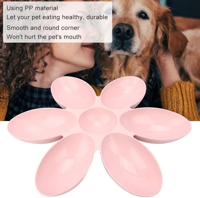 Six-Petals Flower Pet Puppy Water Bowl, Slow Feeder Dog Cat Bowl Cat Water Allows Six Dogs Or Cats to Eat Or Drink (Pink) Bowls for Indoor Cats
