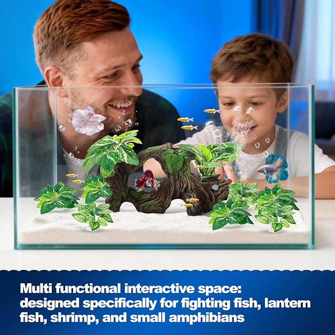 Xereooe 8 Pcs Driftwood Cave Aquarium Decor Decor Silk Aquarium Plants Leaves are Soft and Safe for Aquarium Decoration and Fish Tank Decoration