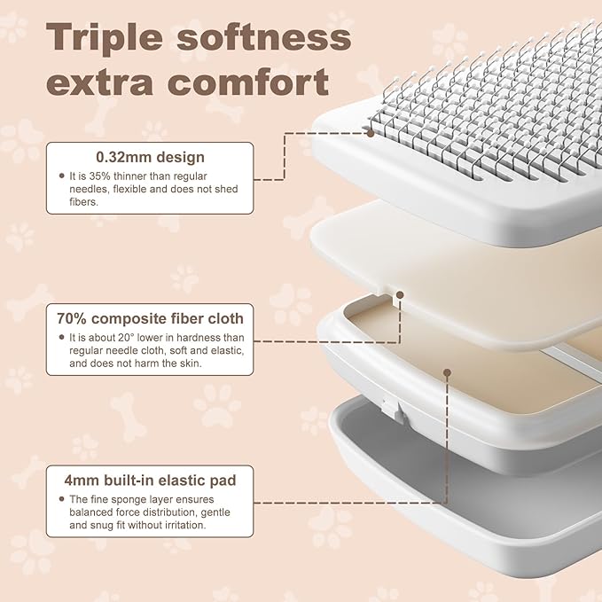 - 【Safe & Skin-Friendly Design】 The pins feature soft rounded bead tips for gentle contact with the skin. With 0.32 mm fine flexible needles, it removes loose fur while providing a soothing massage—without pulling hair or scratching your pet’s skin.