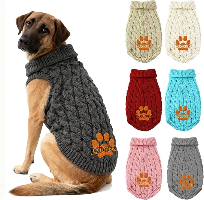 Personalized Embroidered Names Dog Sweater, Custom Cats Winter Clothes, Personalized Christmas Boy Girl Dog Sweaters, Birthday Xmas Party Gifts for Pet Lovers