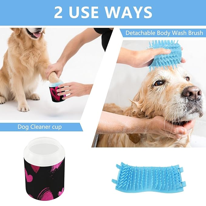 Dog Paw Cleaner Mudbuster Dog Foot Washer for Small Medium Large Dogs Cats Premium Pet Supplies Brush Stroke Hearts Black