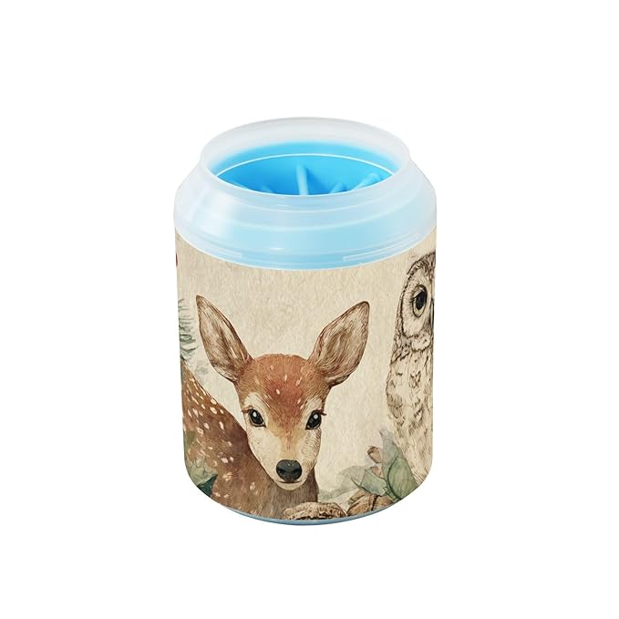 Dog Paw Cleaner Mudbuster Dog Foot Washer for Small Medium Large Dogs Cats Premium Pet Supplies Christmas Deer Owl Pinecorns Beige
