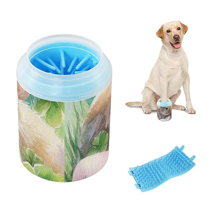 Dog Paw Cleaner Mudbuster Dog Foot Washer for Small Medium Large Dogs Cats Premium Pet Supplies Watercolor Easter Bunny Clover