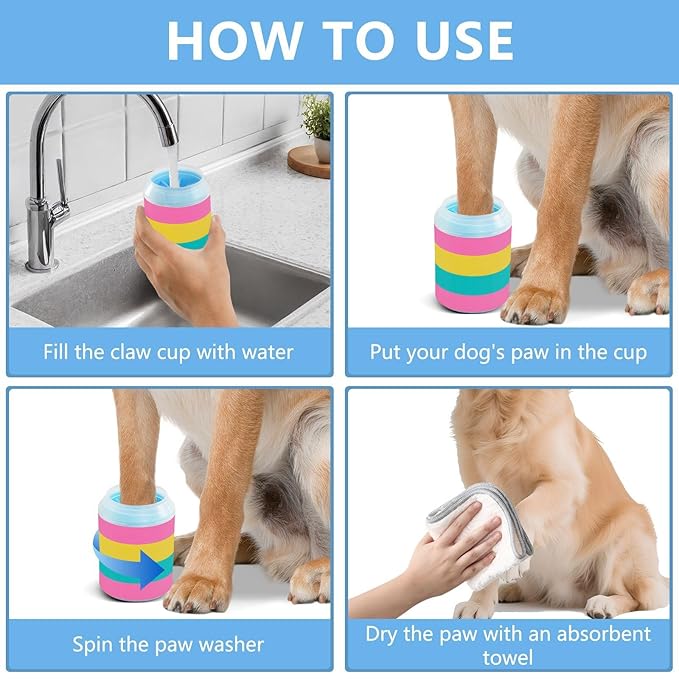 - Easy and Effective Cleaning: The dog paw cleaner just add water and a pet-safe paw cleaner, then rotate the cup to remove dirt and mud