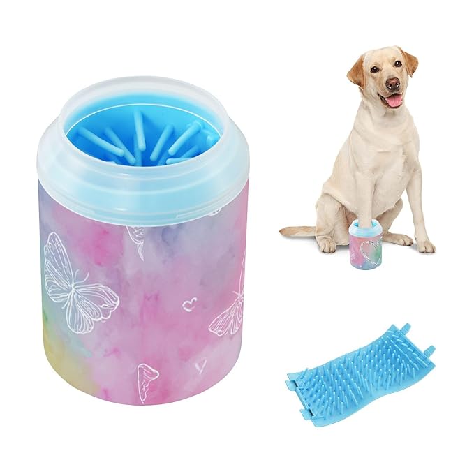 Dog Paw Cleaner Mudbuster Dog Foot Washer for Small Medium Large Dogs Cats Premium Pet Supplies Tie Dye Heart Butterflies