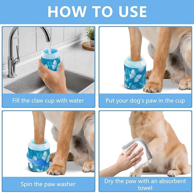 - Easy and Effective Cleaning: The dog paw cleaner just add water and a pet-safe paw cleaner, then rotate the cup to remove dirt and mud