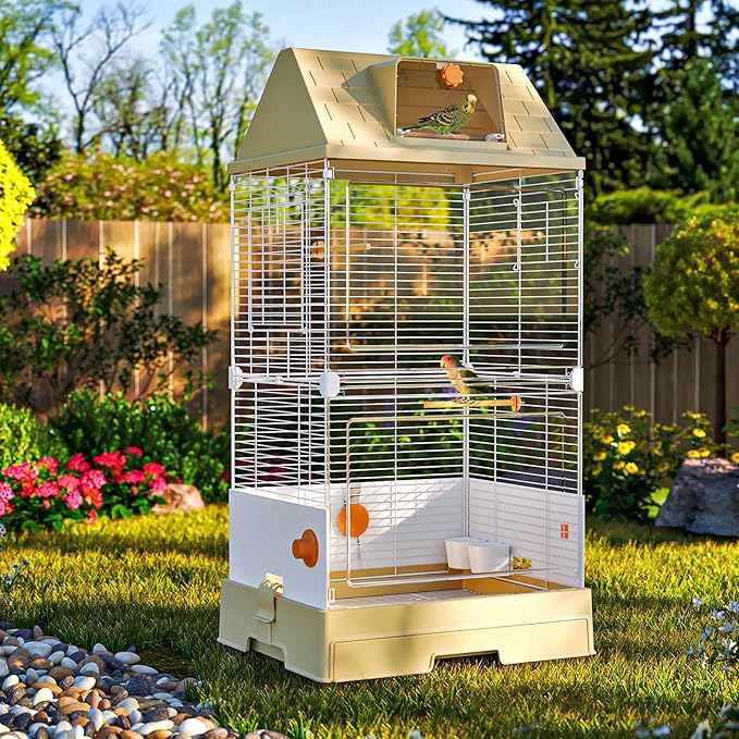 - Roof with Window:The durable roof is waterproof and dustproof, protecting the cage interior. The built-in transparent window offers an extra top viewing angle, so you won’t miss your birds’ activities when they rest or play near the roof.