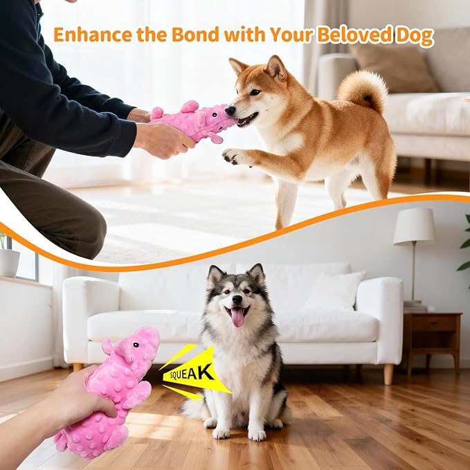 • 【Squeaky & Crinkle Dog Toys】Built-in squeaker and crinkle paper that catches pets' attention to keep them engaged and extend playtime. Perfect for playful pups toy helps bust boredom and relieve anxiety