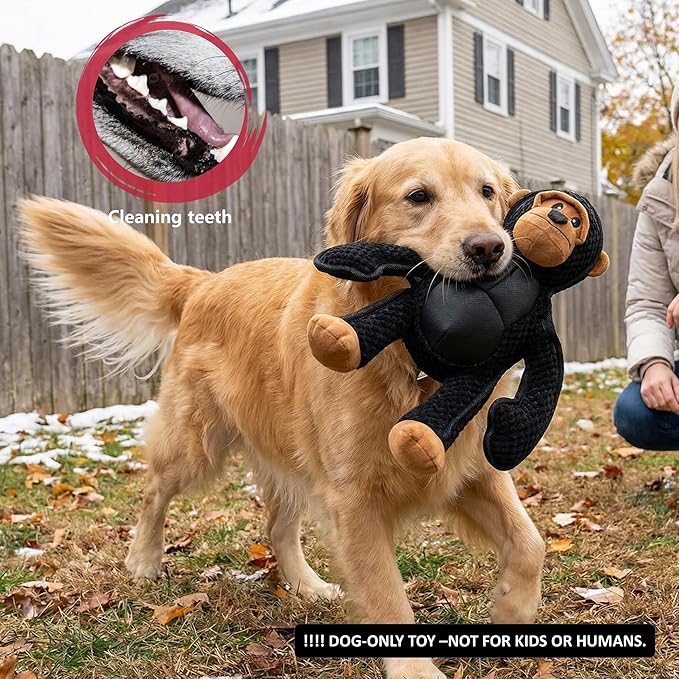 - LARGE DOG TOY: This 11" x 11"plush dog toy fits large mouth DOGS breeds perfectly. This dog toys gorilla plush size makes chewing way more satisfying for your dogs. Chew and feel even better! Ideal for small dog breeds, this gorilla dog toy serves as a comforting companion that helps boost your furry friend’s sense of security.