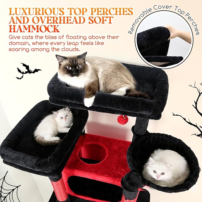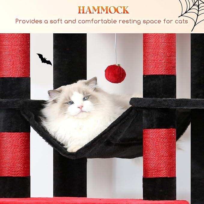 Globlazer XXL Giant Gothic Cat Tree, 83 Inch Heavy Duty Tall Goth Cat Tower for Indoor Cats Large Adult, Multi-Level Large Cat Condo with 8 Scratching Posts, Hammock, 2 Platform, F83B, Black Red