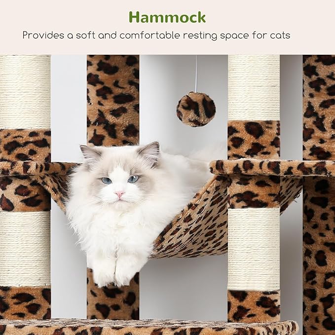 Globlazer XXL Giant Cat Tree, 83 Inch Heavy Duty Tall Cat Tower for Indoor Cats Large Adult, Multi-Level Large Cat Condo with 8 Scratching Posts, Hammock, 2 Cat Caves, 2 Platform, F83B, Leopard Print