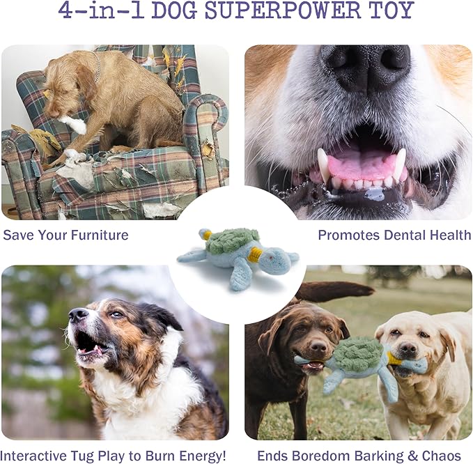 Fuzzwoof Squeaky Dog Toy, New 2025 Turtle Tug of War Crinkle Dog Toy, Tough Large Breed Interactive Stuffed Toy Trianing Fun to Keep Them Busy
