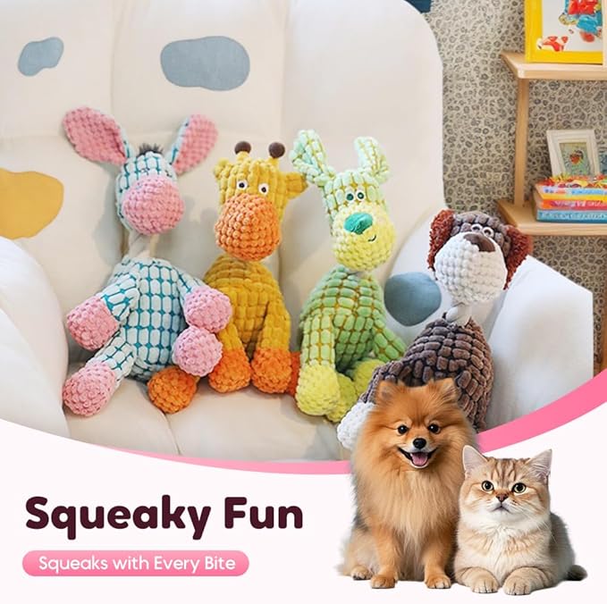 - 【Versatile Pet Companion】Serving as a chew toy, tug-of-war companion, and cozy pillow, this plush giraffe dog toy adapts to multiple play styles. The cute animal shape offers comfort and interactive fun for puppies, small, and medium-sized dogs.