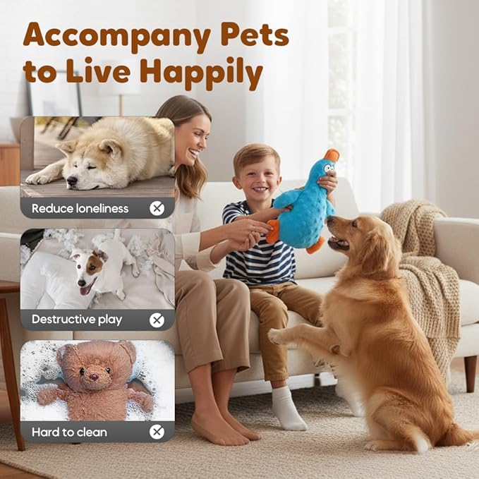 - Triple-Layer Durability: Reinforced stitching + nylon mesh lining makes this dog toy for aggressive chewers withstand 50kg. The tear-resistant duck dog toy lasts 3x longer than standard plush toys.