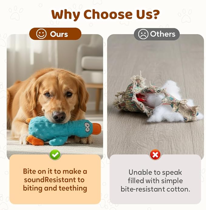 - Triple-Layer Durability: Reinforced stitching + nylon mesh lining makes this dog toy for aggressive chewers withstand 50kg. The tear-resistant duck dog toy lasts 3x longer than standard plush toys.
